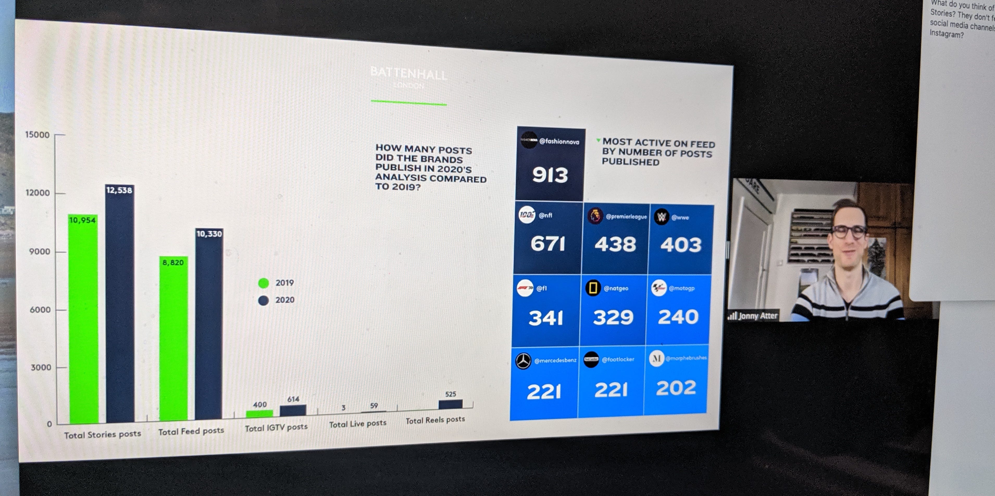 On Friday, my colleagues Jonny Atter (above) Steph Bennett and I presented our social media trends predictions for 2021. In the first of a set of showings, I’ll call them (live, online, non-recorded events, repeated for different time zones) we revealed our lates data and insights into social media user behaviours, demographics, brand benchmarks and predictions for the year ahead.